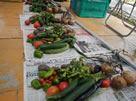 | 今回は講義からスタート。前回、畝立てを行ったエリアにどの作物を植えていくかを決めていきます。夏野菜の王道、トマト、ナス、キュウリはもちろんピーマン、ズッキーニなど様々な種類を植えていきます。ビニールハウスから苗を選んで早速植えつけスタート。