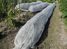 | 秋晴れの一日になりました。田んぼの畦の草刈りを行いました。台風の影響で破けてしまった防鳥ネットを修理、かけなおしをしました。夏野菜のゴーヤ、オクラなど撤収し、堆肥、石灰などを投入しました。午後からは前回話し合った作付け図を参考に、冬野菜の畝を立ててキャベツ、ブロッコリー、白菜、かぶなどの植え付けを行いました。防虫のため不織布を張り、トンネルを立てました。 | |||