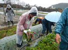 | 今日のセミナーは農地、里道など甲山農地周辺の植生調査を行いました。まずは、里と水辺の研究所の方から調査の概要や、調査にあたっての注意事項の説明を受けた後、実際にフィールドに出て、調査記録用紙に記入しながら解説を聞きました。里道の見方としては、田、斜面、人が歩くところの3つに植生が分かれることなど教えていただきました。 午後からは、ショウガ、ニンジン、下仁田ネギなどの収穫、ダイコンの間引きとマルチかけ、霜よけのための白菜のヒモかけ、エンドウの植え付けなどを行いました。最後にしめ縄作りの準備として、わら束作りと、縄をなう作業を行いました。 |